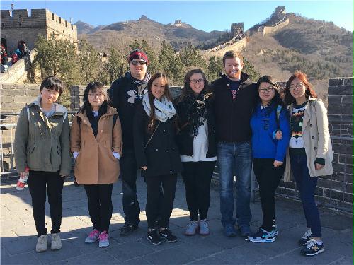 为了帮助美国交换生更好融入在北京的生活,半岛网页版的徐天梦、张山等志愿者同学每周末都会悉心陪同他们参观天安门、长城等北京最具特色的名胜和景点。游览过程中,中美学生结伴而行,热烈交流。虽然交换生常听闻长城古迹等中国名胜,但从未身临其境。几次游览不仅使他们饱览了中国的壮丽山河,感受到中国人民的智慧、坚韧的品质,也丰富了彼此的美好回忆,增进了中外文化的交流。
