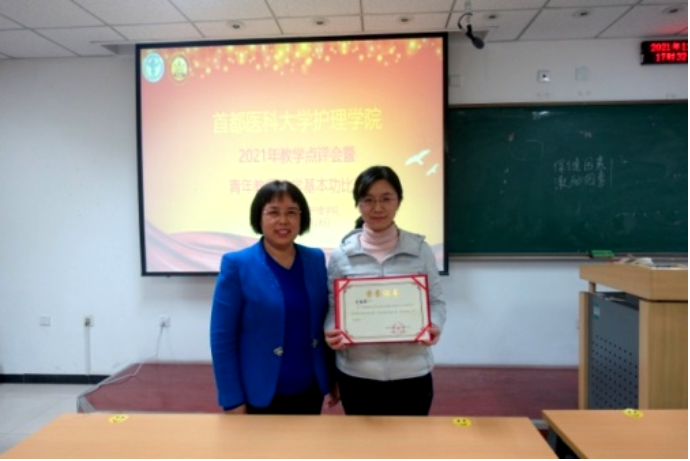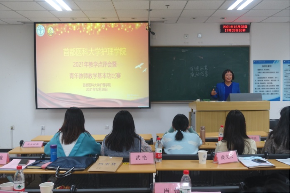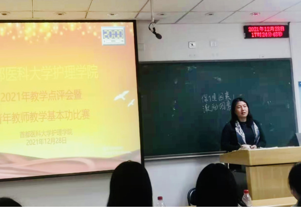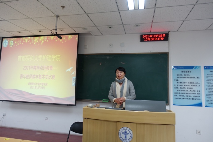 为培养青年教师爱岗敬业、严谨治学的态度,激发青年教师更新教育理念和掌握现代教学方法的热情,进一步推进课程思政建设,半岛网页版于2021年12月28日下午,在校本部第一教学楼510教室举办了2021年教学点评会暨青年教师教学基本功比赛。本次比赛由专家评委和学生评委组成,校、院两级教学督导赵素梅老师、北京市教学名师王雯教授、庞文云副院长、肖倩副院长、学系主任王艳玲副教授、岳鹏副教授、教学主管景丽伟教授到场担任专家评委,学生评委由半岛网页版2019级四年制护理专业5名同学担任。学校教务处武艳处长、半岛网页版刘均娥院长出席了比赛,全院教职工线上、线下全程观摩了比赛比赛由庞文云副院长主持。